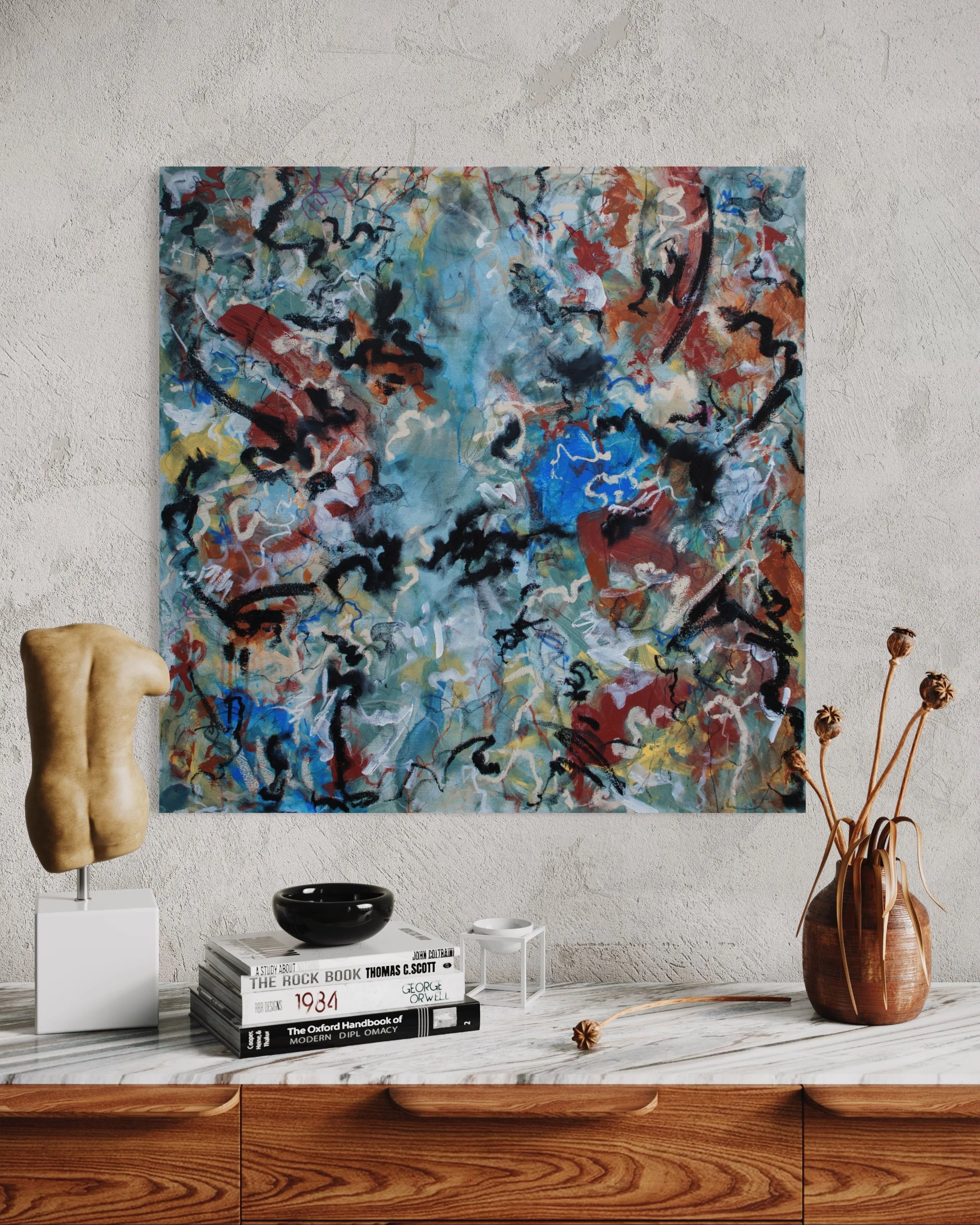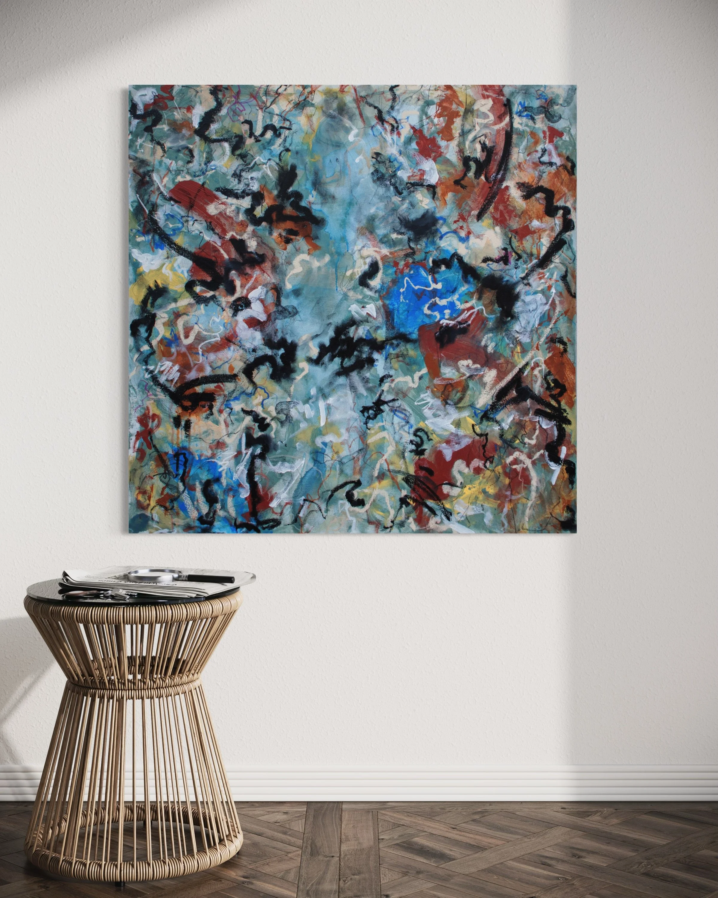 Acrylic, Charcoal and Oil Stick on Canvas